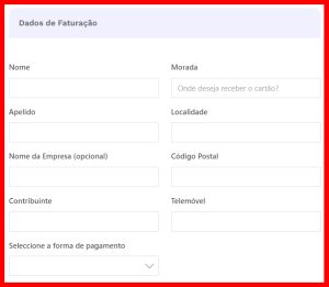 Coloque os dados para a sua fatura, morada de entrega do cartão físico e selecione o modo de pagamento pretendido.